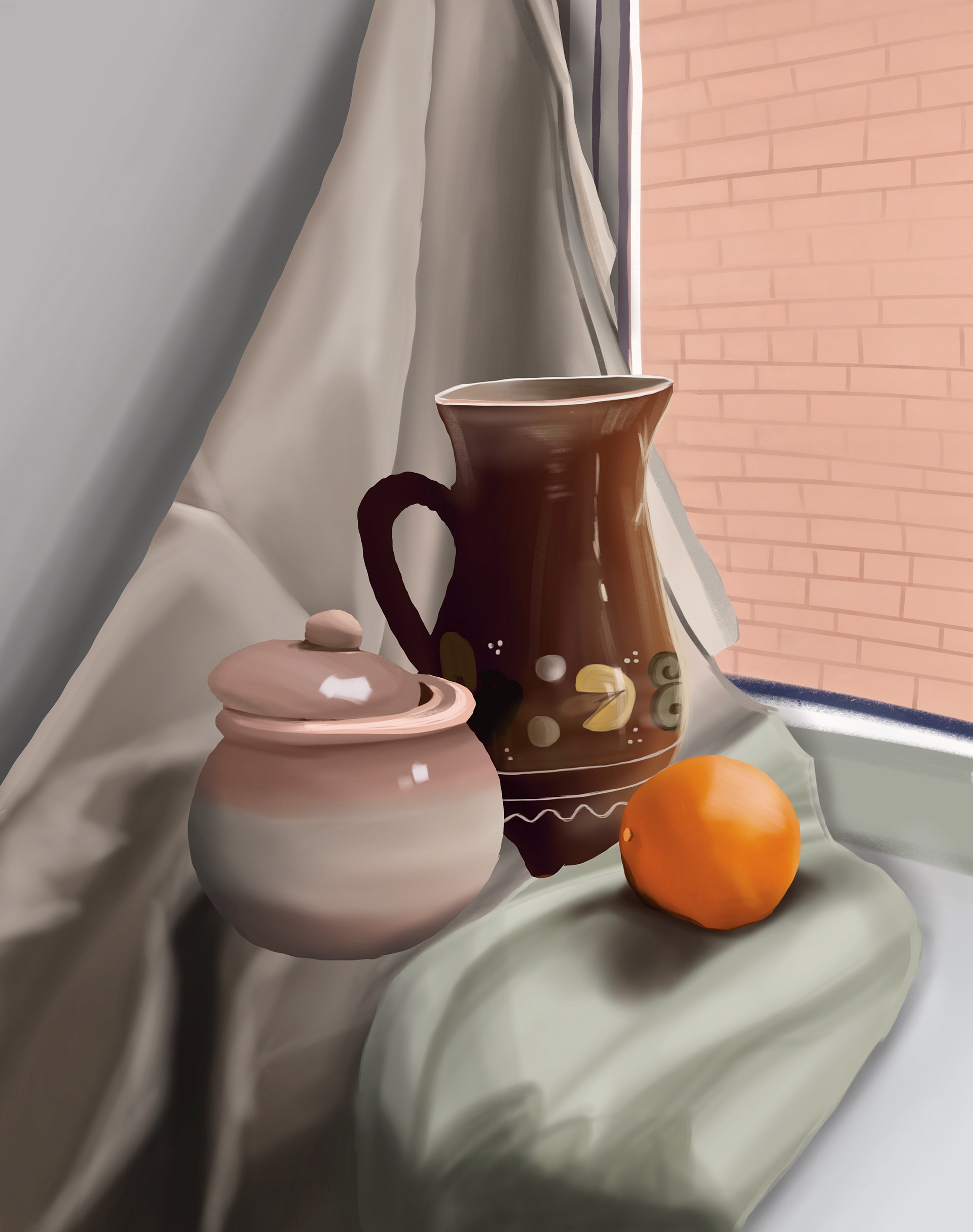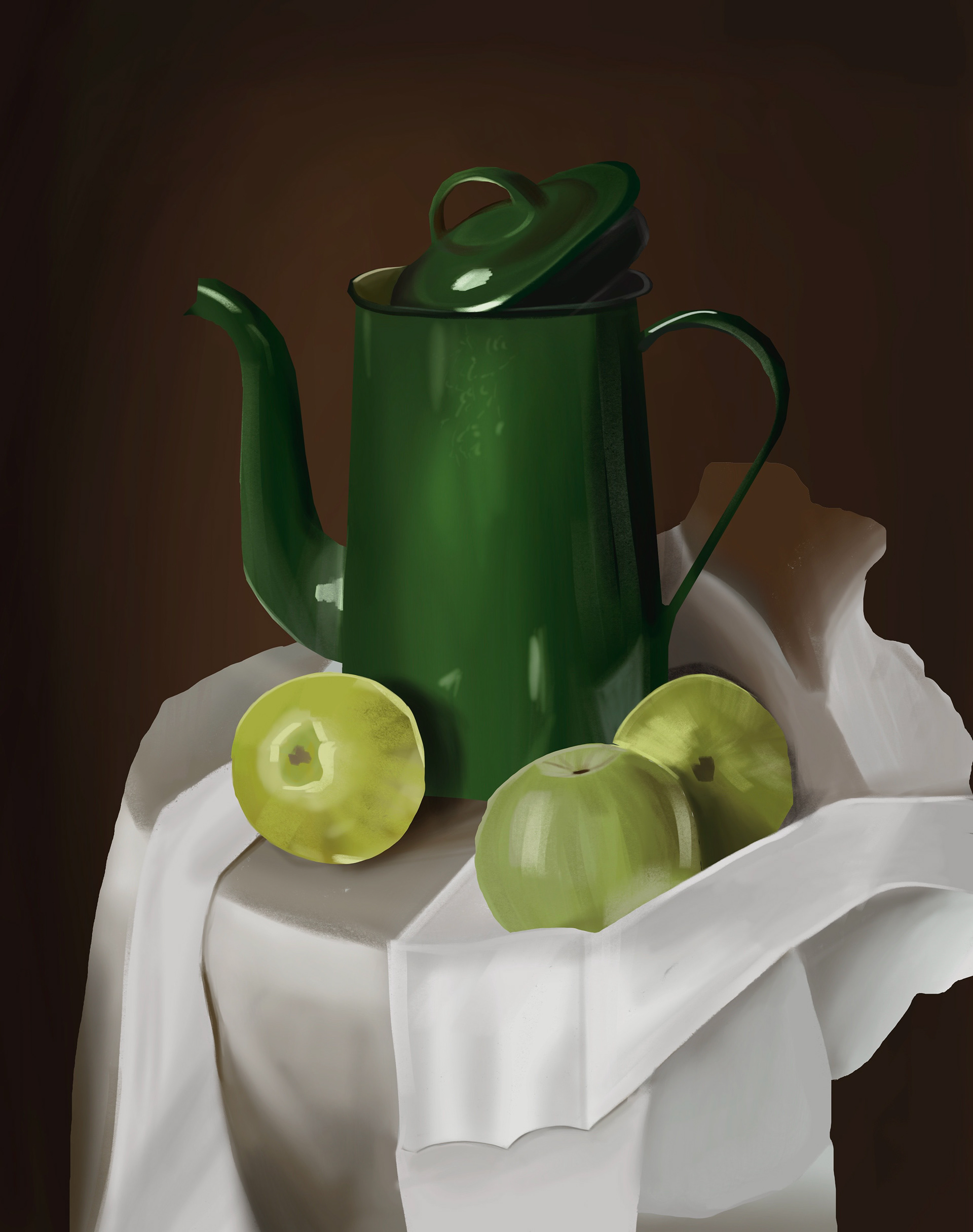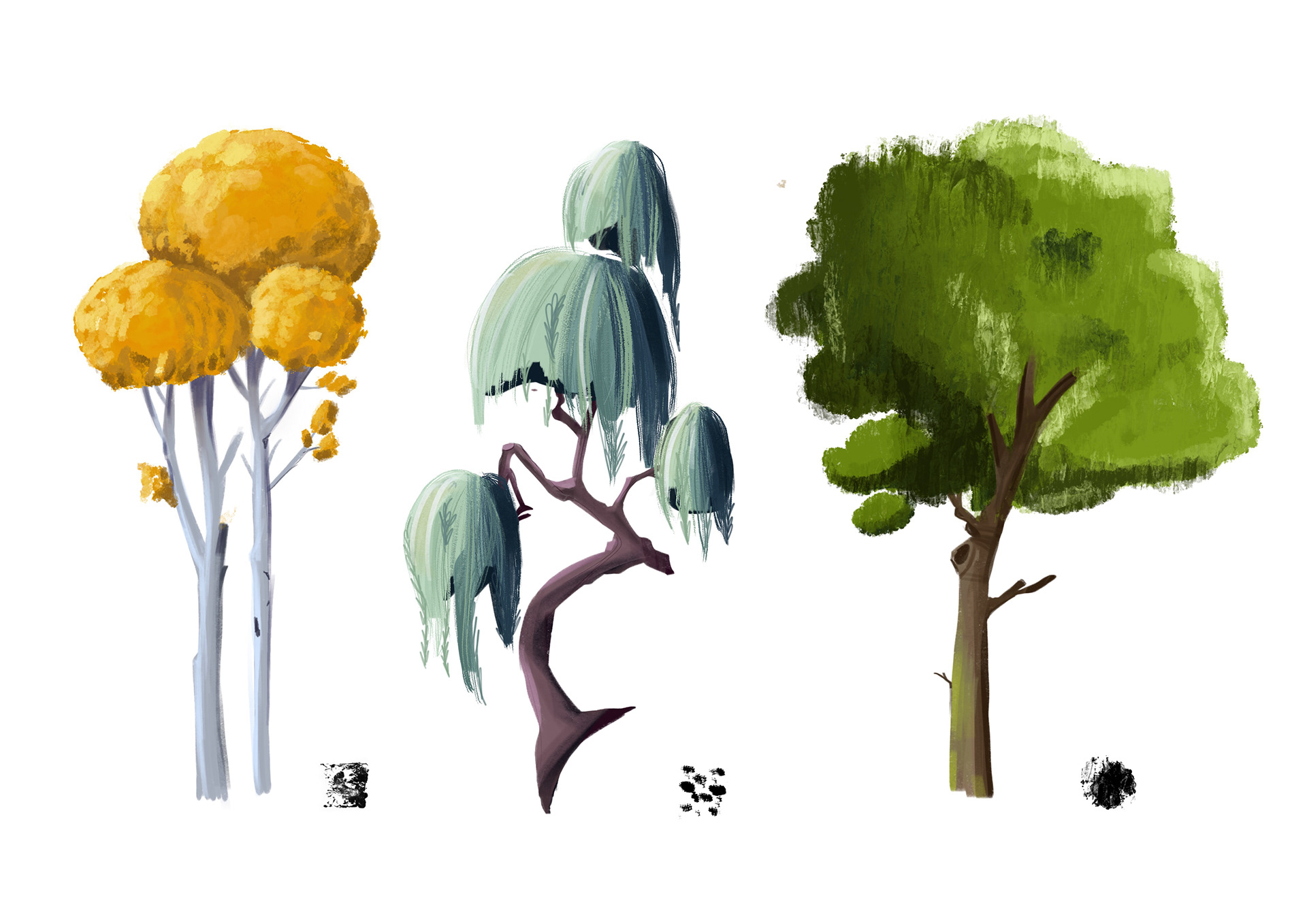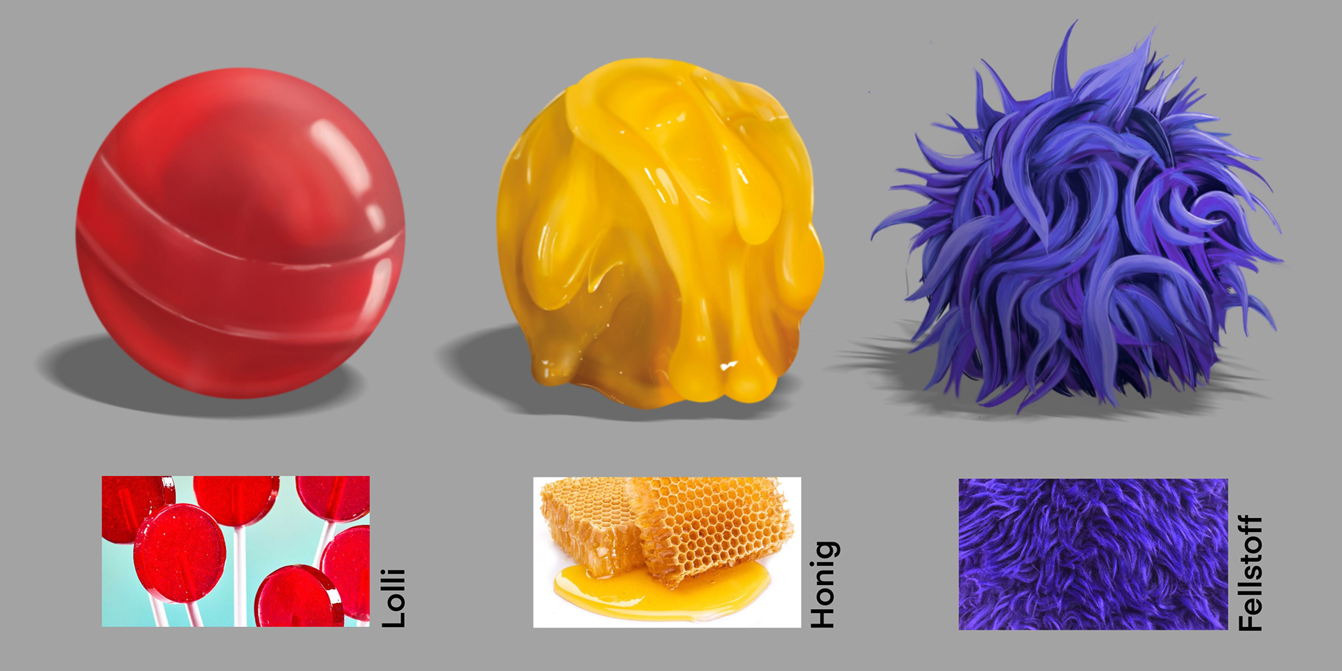 Neben der großen Szene sind hier noch einige weitere Einblicke in Digital Paintings zu sehen, die ich im Laufe des Semesters erstellt habe. Diese Arbeiten zeigen verschiedene Techniken und Themen, die wir im Kurs behandelt haben, darunter Charakterdesign, Texturübungen, sowie die Gestaltung von Umgebungen und Stillleben.