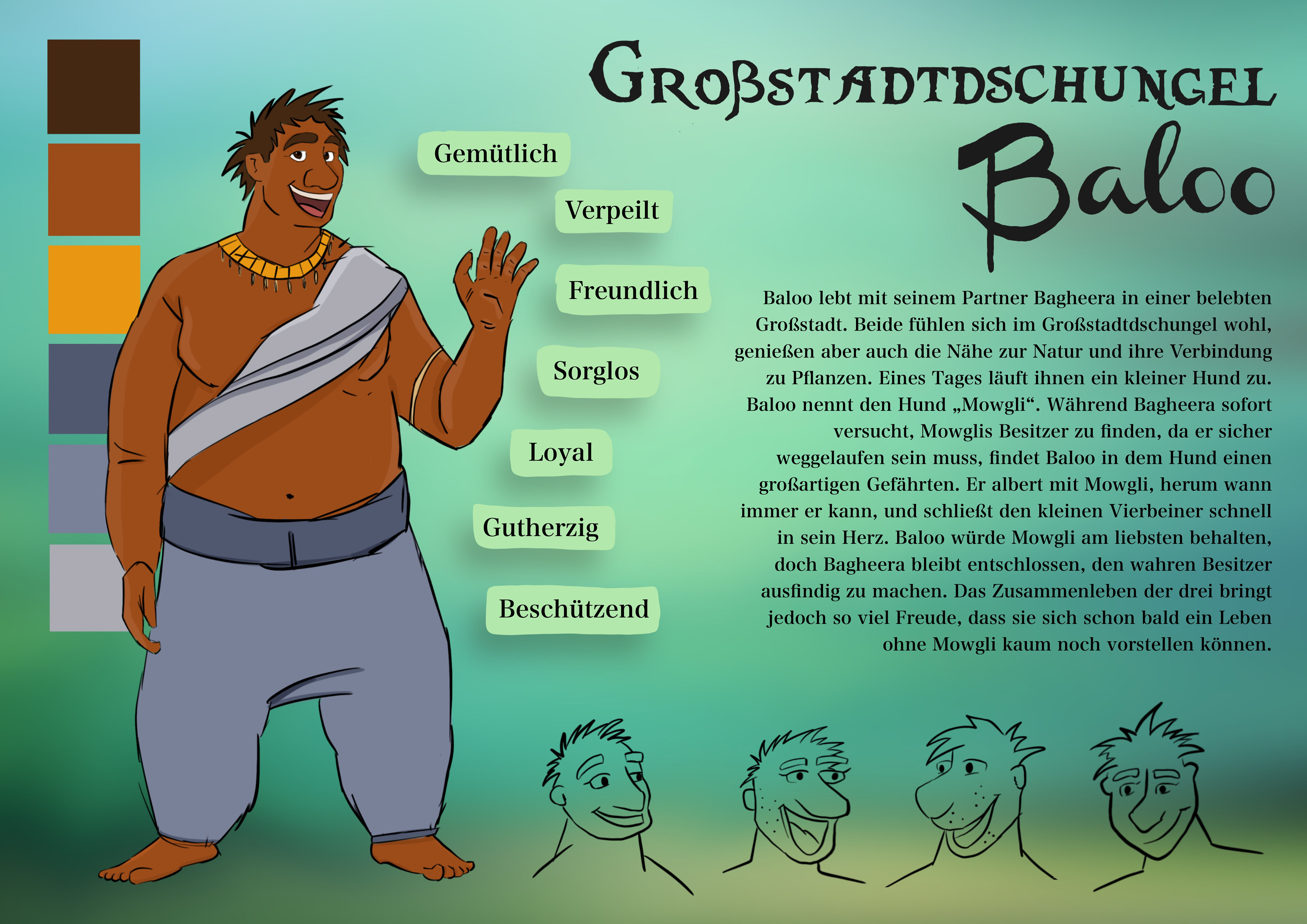 Charakterdesign-Sheet für den Charakter Baloo