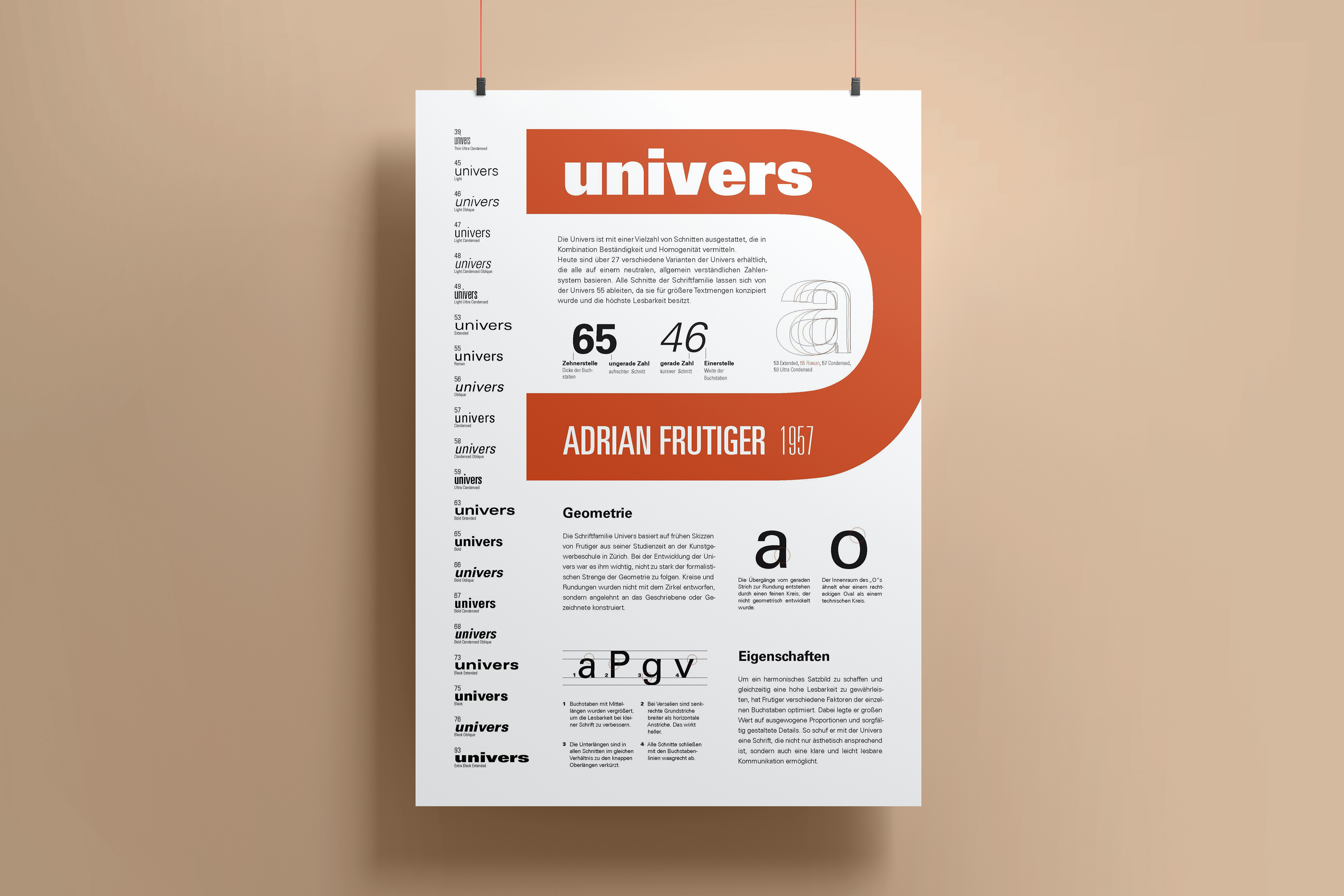 Gestaltung eines DIN-A3-Plakats, das die Schrift Univers umfassend vorstellt.