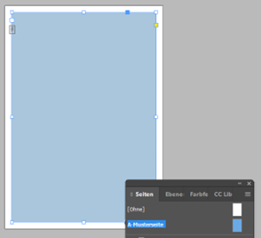 3. Musterseite: Eine Musterseite wurde erstellt, mit einem blauen Rechteck als Hintergrund, das auf die Seiten angewendet wurde.