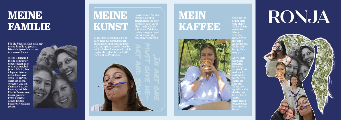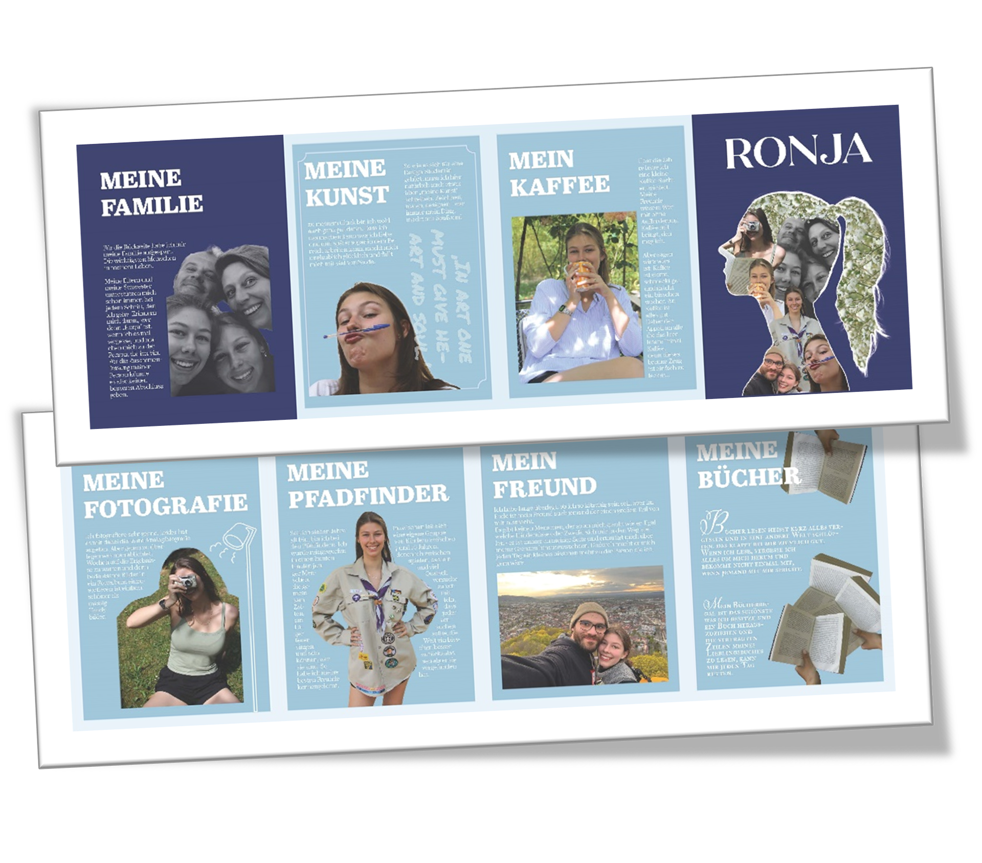 In dieser Aufgabe ging es darum, ein Leporello in InDesign zu erstellen, das meine verschiedenen persönlichen Interessen präsentiert. Dabei habe ich Funktionen wie die Anpassung von Absatzformaten, das Einfügen freigestellter Bilder und die Verwendung von Grundlinienrastern genutzt. Auch diesen Prozess habe ich Schritt für Schritt dokumentiert.