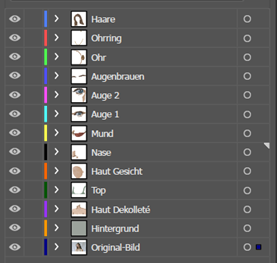 4. Bereiche unterteilen: Ich teile das Gesicht in verschiedene Bereiche (z.B. Mund, Nase, Augen) und erstelle dafür separate Ebenen.