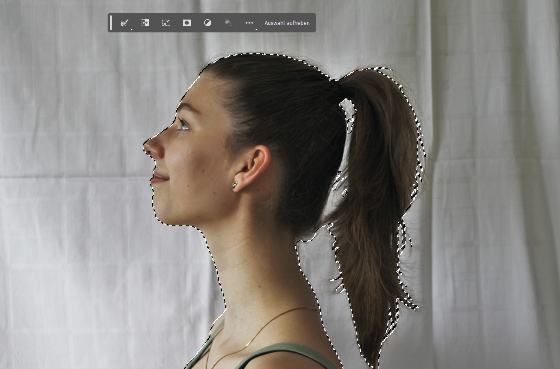 1. Bildaufnahme: Ich habe ein Profilbild aufgenommen und in Photoshop geöffnet, um die markanten Bereiche mit der „Motiv“-Funktion auszuwählen.