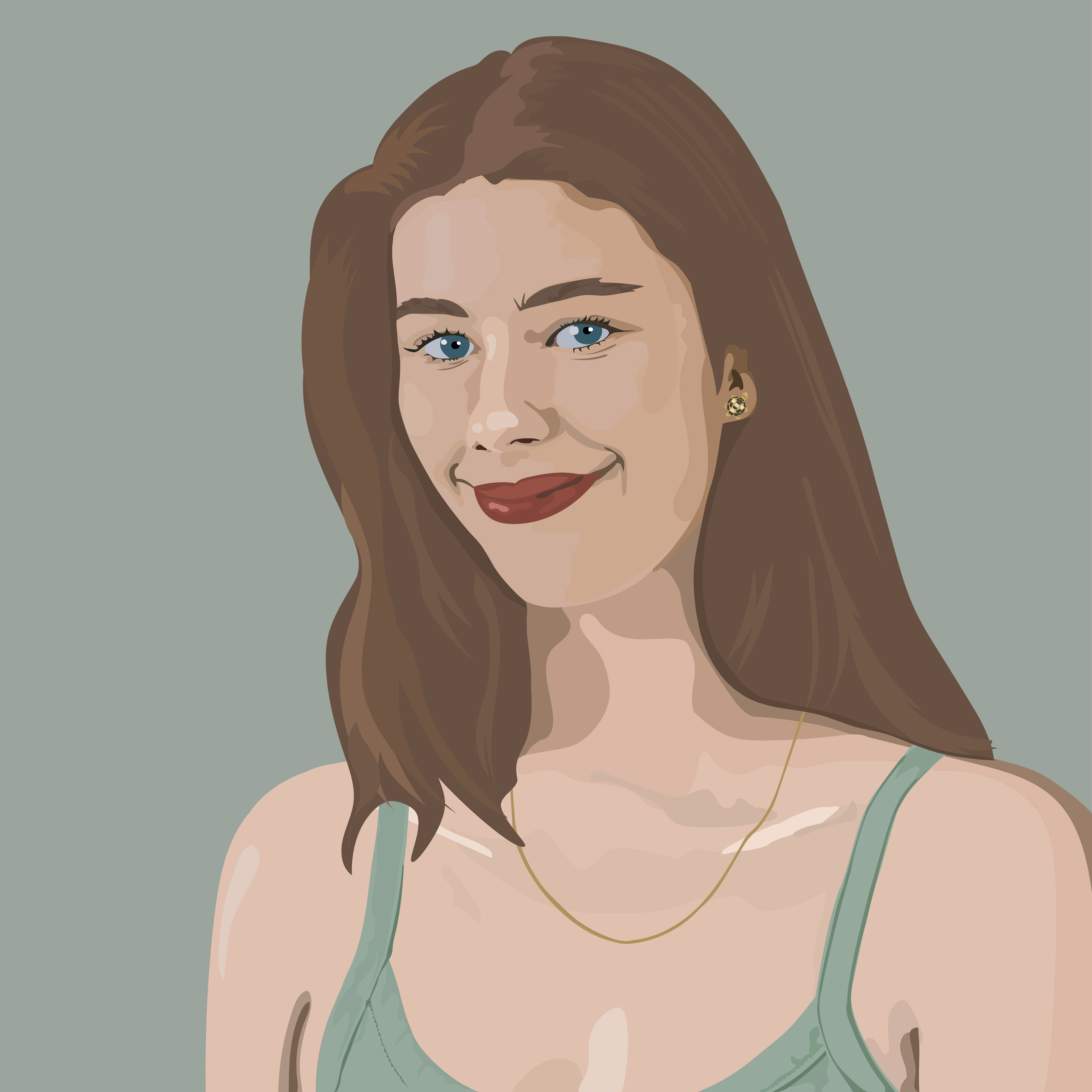 In Illustrator habe ich ein Portrait händisch vektorisiert, um meine Fähigkeiten im Umgang mit Vektorwerkzeugen und präziser Detailarbeit zu demonstrieren.